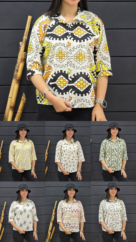 شومیز لینن جلو دگمه جین ۶ عددی