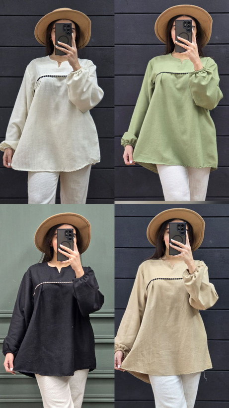 تونیک مانتویی لینن ساده جین ۶ عددی